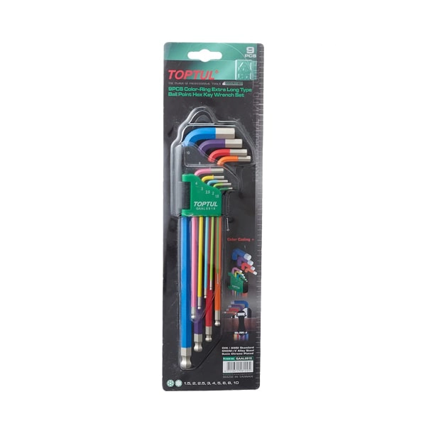 معرفی و مشخصات آچار آلن سر گرد رنگی تاپ تول کارتی فوق بلند 9 عددی مدل GAAL0918