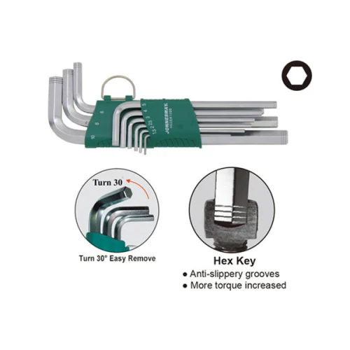 معرفی و مشخصات ست آچار آلن جانزوی 6 گوش کارتی بلند 9 عددی مدل H02SA109S
