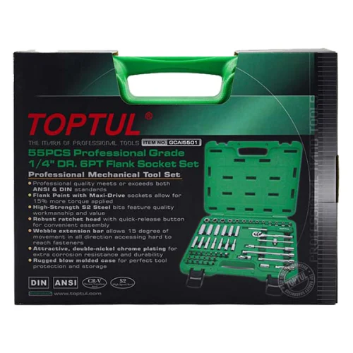 معرفی و مشخصات جعبه بکس تاپ تول 55 پارچه 1/4 اینچ مدل GCAI5501