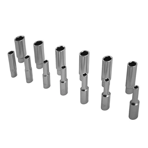 13 عدد بکس سایز بلند با درایو 1/4 اینچ با سایزهای 4، 4.5، 5، 5.5، 6، 7، 8، 9، 10، 11، 12، 13، 14 میلیمتر