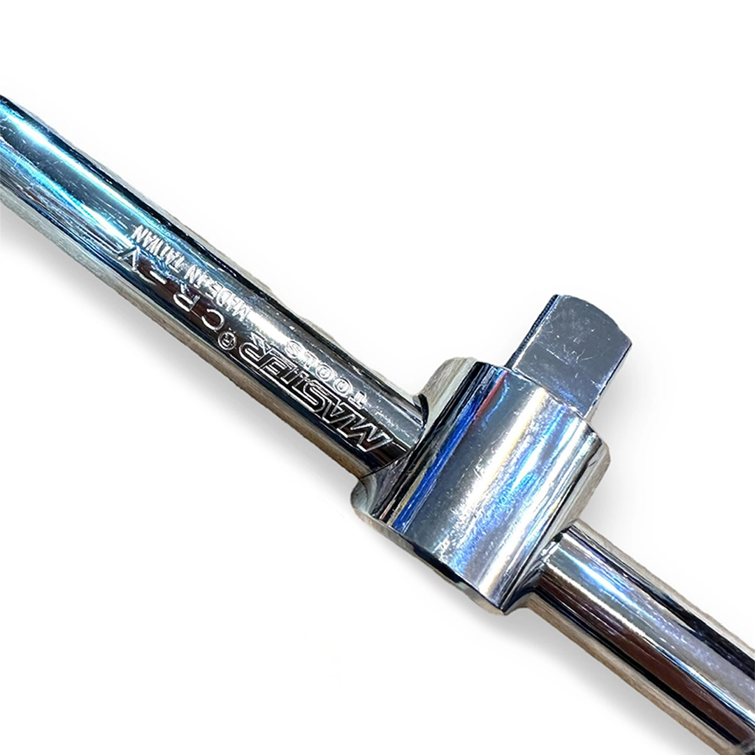 دسته بکس کشویی درایو 1/2 اینچ 30 سانتیمتر مسترتولز TMV-412 در کشور تایوان توسط برند مسترتولز طراحی و تولید شده است. دسته کشویی های مسترتولز از آلیاژ کروم-وانادیوم و به روش drop forged تولید و به بازار عرضه شده است. طول این دسته بکس 30 سانتیمتر و سایز درایو آن 1/2 اینچ میباشد. دسته بکس کشویی ابزاری است که در انجام اتصالات به ما کمک میکند، این میله دارای یک سری نری میباشد که در میله آزادانه حرکت میکند و شما میتوانید هر کجا که لازم باشد آن را نگه داشته و از آن استفاده کنید. در ابتدا و انتهای دسته کشویی مسترتولز دو پین بکار رفته است تا از بیرون آمدن سری نری جلوگیری کند. با قرار دادن سری نری در وسط میله میتوانید با استفاده از دو دست خود جهت وارد کردن نیرو بیشتر بهره ببرید. برند مسترتولز سعی کرده است تا با استفااده از بهترین متریال در دسته کشویی های خود کیفیت و طول عمر محصولات خود را تا جای ممکن بالا ببرد.