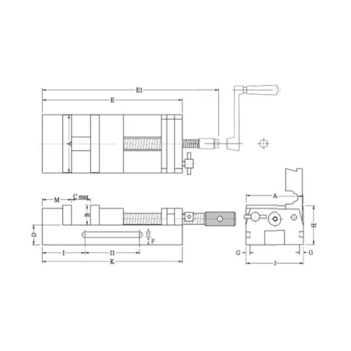 مدل و کد کالا عرض فک (اینچ) – A عرض فک (میلی متر) – A ارتفاع فک (میلی متر) – B ماکزیمم طول کارگیر فک (میلی متر) – C MAX عرض کلی گیره با بیس (میلی متر) – J ارتفاع کلی گیره با بیس (میلی متر) – H طول کلی گیره با بیس (میلی متر) – E ماکزیمم اعمال فشار فک (Kgf) وزن (کیلوگرم)